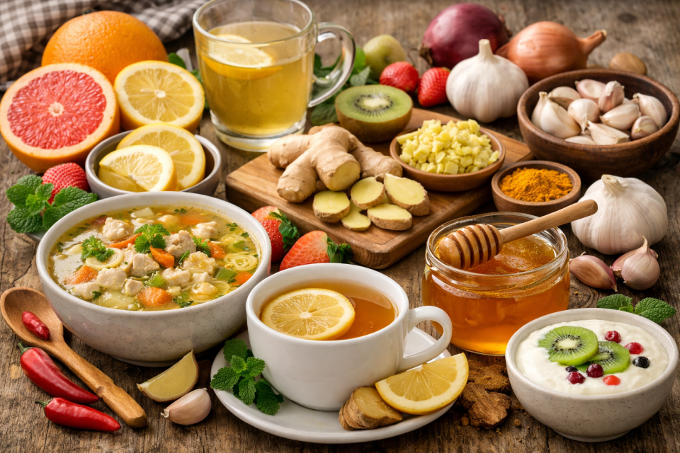 Όταν η γρίπη ή το κρυολόγημα χτυπούν την πόρτα, το σώμα μας μπαίνει σε «λειτουργία άμυνας». Ξεκούραση, υγρά και σωστή διατροφή είναι οι καλύτεροι σύμμαχοι για να νιώσουμε καλύτερα πιο γρήγορα. Μπορεί το φαγητό να μη λειτουργεί σαν φάρμακο, όμως υπάρχουν τροφές που βοηθούν ουσιαστικά το ανοσοποιητικό και ανακουφίζουν από τα ενοχλητικά συμπτώματα.