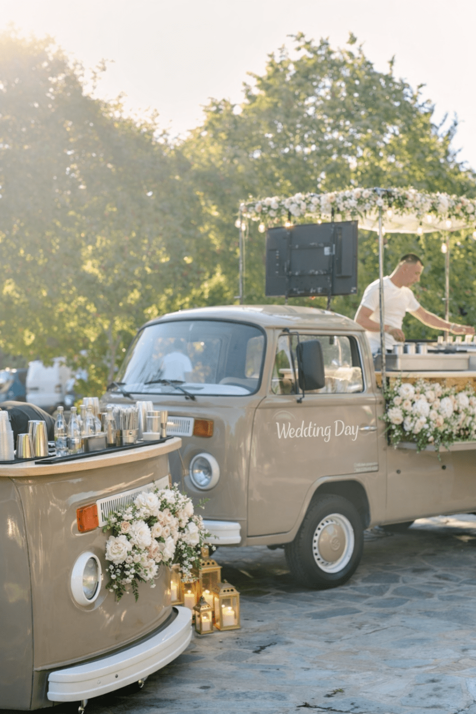Το van διακοσμείται σύμφωνα με το concept της εκδήλωσης – ρομαντικό, boho, elegant, minimal ή luxury.